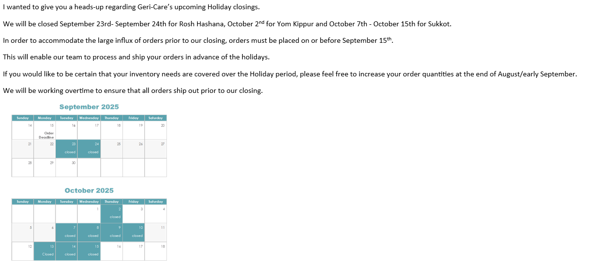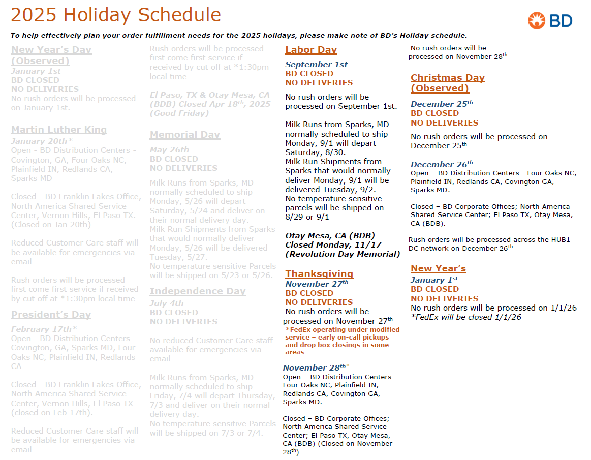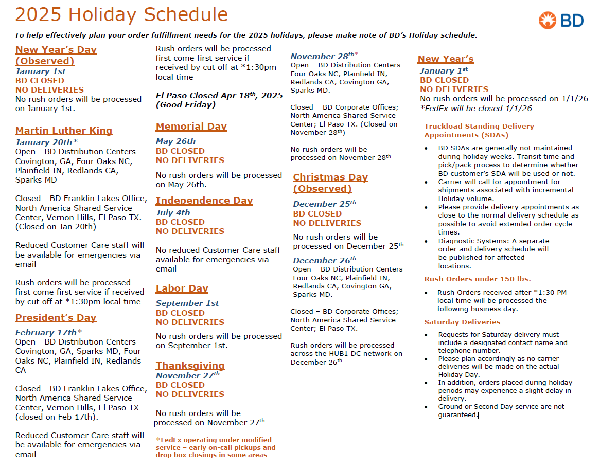 January 1st (2026). - Customers are strongly encouraged to place orders before Wednesday, December 10th to