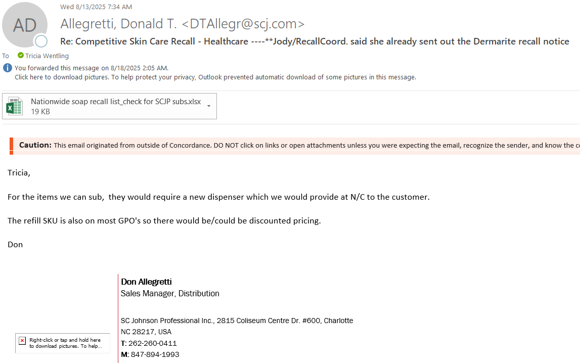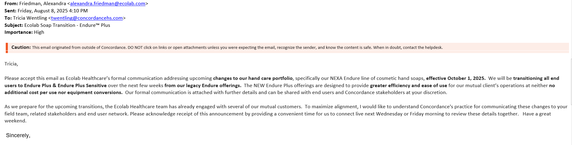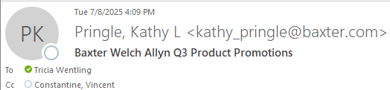 Please reach out to Tricia Wentling if you have further questions. Thanks!Communication Type: