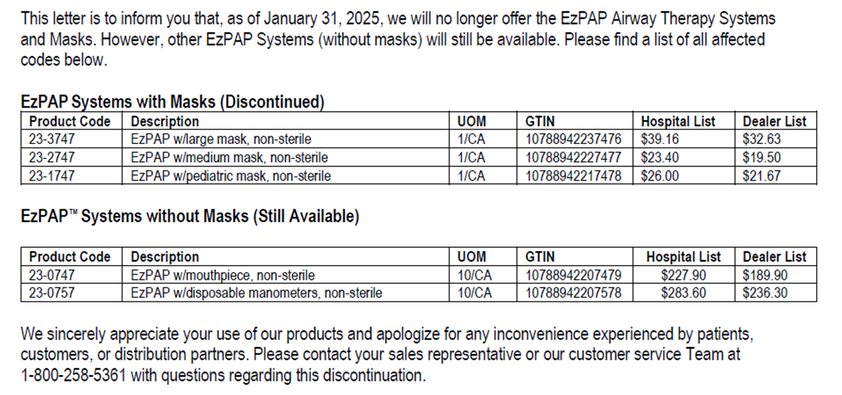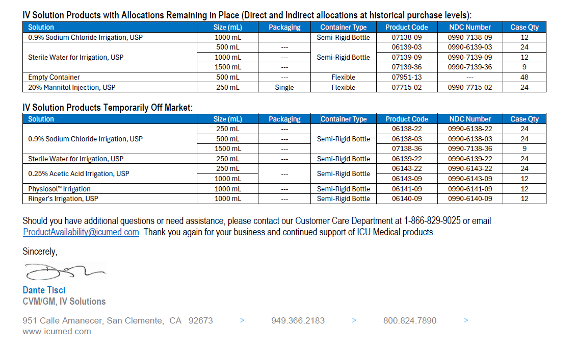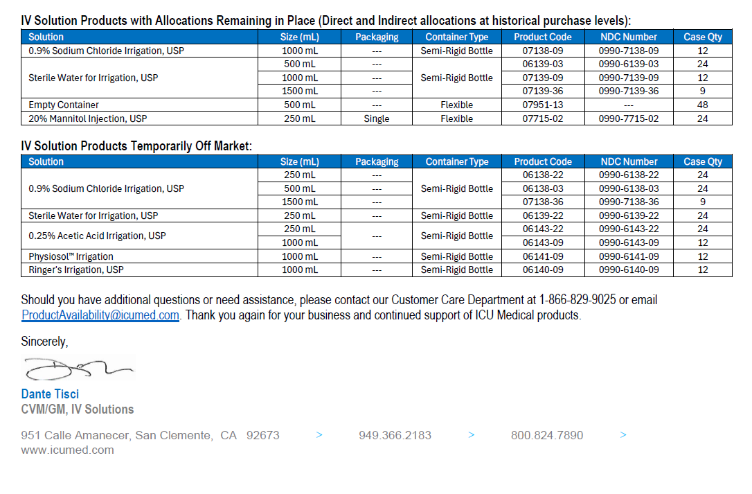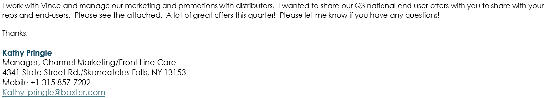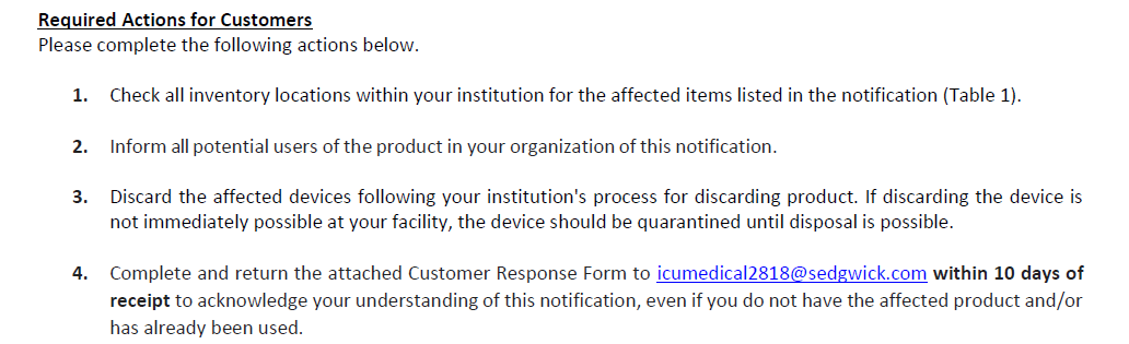 Hello,Please see below and attached letter regarding discontinued items from Teleflex V#10538. I have attached a usage file for the last six months.These items have been placed in item inactivation: