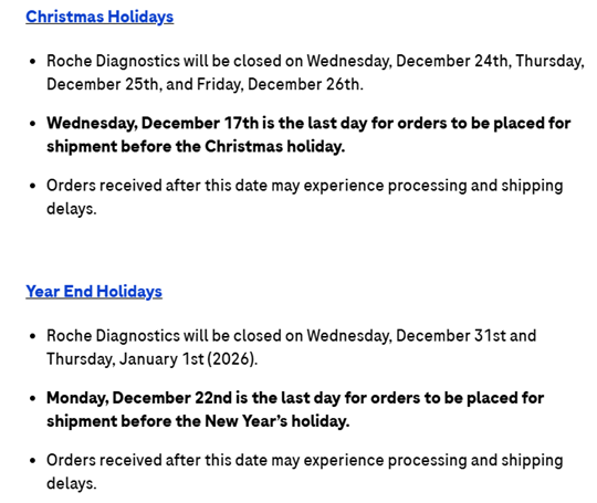 ** OPEN – Wednesday December 31st ***CHS USA Holiday Closure Notice:
