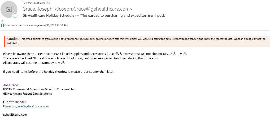 - Please send an email to Teresa Tofel and me, with the account name, estimated forecast, and Concordance DC location for insight before the PO is placed