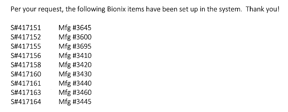 Hello,Please see below regarding a new Veritor SKU from BD.Per the attached customer letter from BD V#10125, S#326088 (Mfg #256082) has been discontinued and replaced by S#428181 (Mfg #256092). S#326088 has been placed into item inactivation. I have attached a usage file and customer listing for the discontinued item. Thanks!Communication Type: