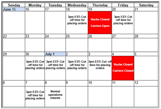 - Roche Diagnostics will be closed on Thursday, November 27th and Friday, November 28th.