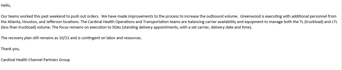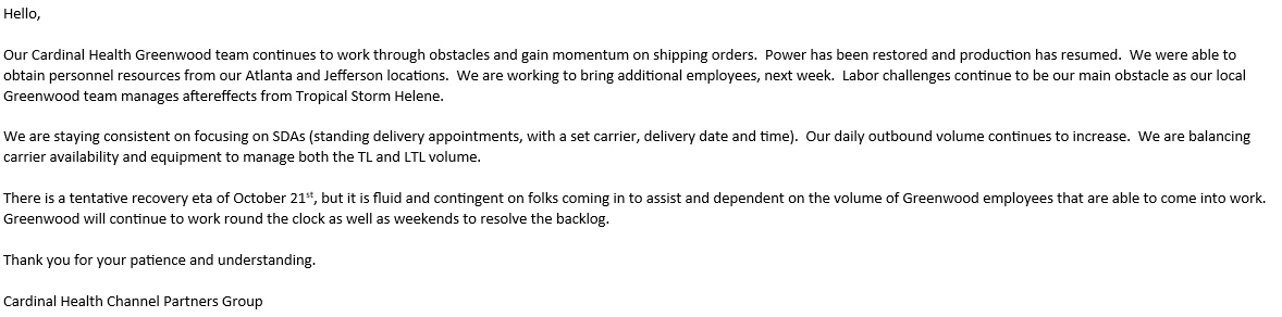 We are sharing with all of our distributor partners the attached Abbott Nutrition inventory update.