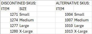 - A list of items that have been discontinued and should be removed from your systems. Applicable substitute items have been added.