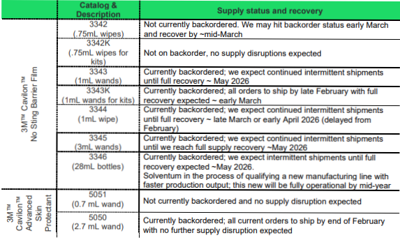 - We have secured accurate inventory positions within our Owens & Minor distribution network.